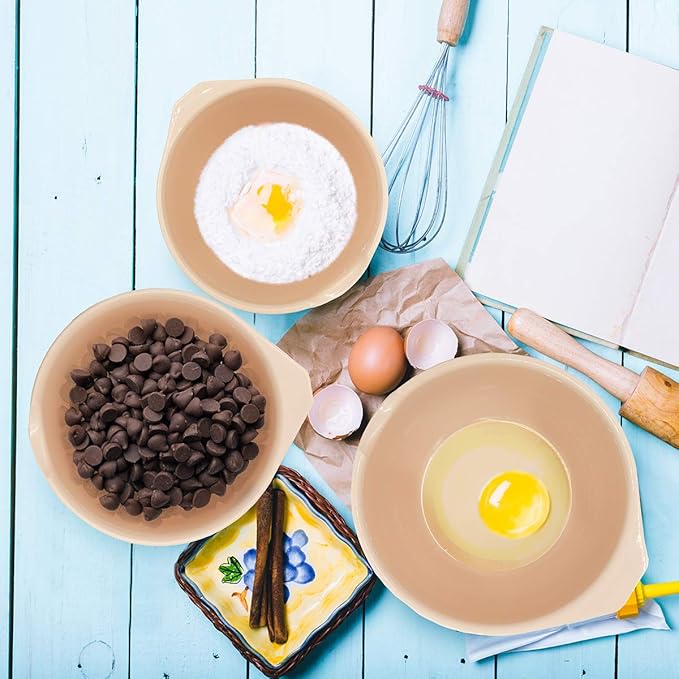 GLAD Mixing Bowls with Pour Spout| Nesting Design Saves Space | Non-Slip, BPA Free, Dishwasher Safe Plastic | Kitchen Cooking and Baking Supplies, Blush, 3 piece set