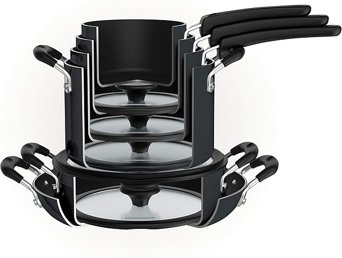 Tramontina Aluminum Non Stick 11-Piece Nesting Pots and Pans Set with Lids - Gray, Kitchen Nonstick Cookware Set, Dishwasher and Oven Safe
