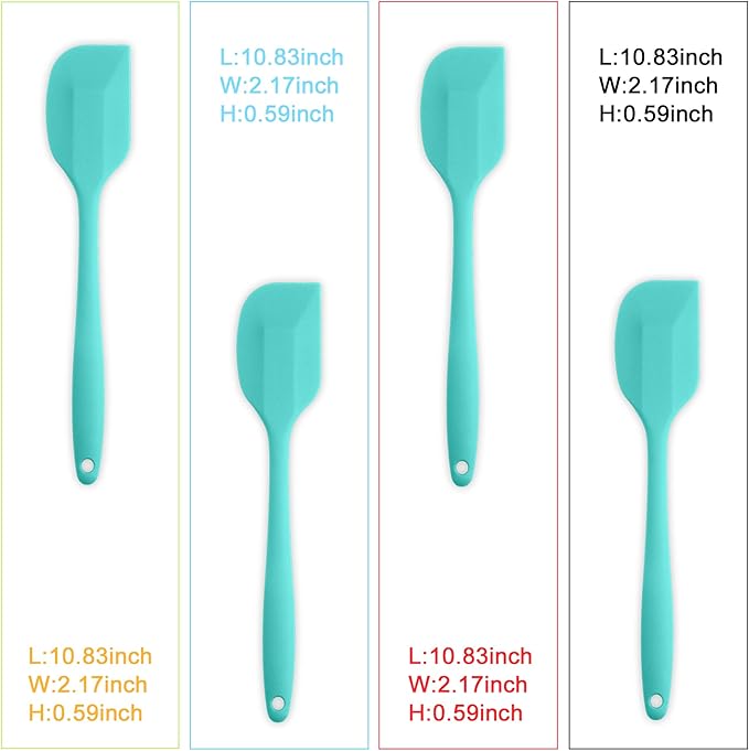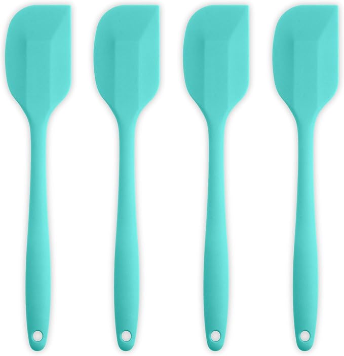 Silicone Spatula 4-piece Set, Heat-Resistant Non-stick Rubber Spatulas with Stainless Steel Core, Light Blue