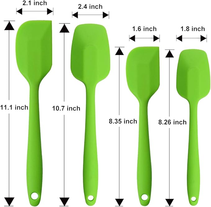 Silicone Spatulas Set, Rubber Spoon Spatula Heat Resistant Spoonula One Piece Design Seamless Spatula Non-Stick Scrapers Baking Mixing Tool (Green Set)