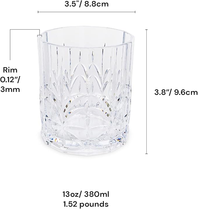 BELLAFORTE Tritan Plastic Whiskey Glasses Set of 4, 13oz Unbreakable Wine Glasses, Shatterproof Crystal Cut Drinking Glasses for Old Fashioned, Cocktails - BPA Free - Dishwasher Safe - Clear