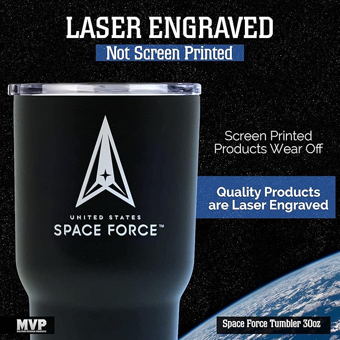 About This LASER ENGRAVED - Our Space Force tumbler features the new “Space Force” logo with “United States Space Force”... Read more