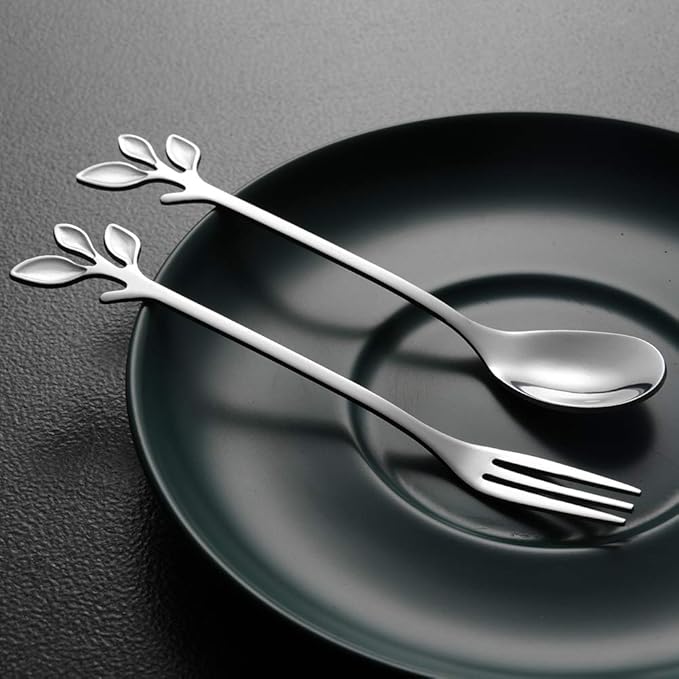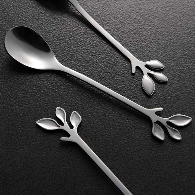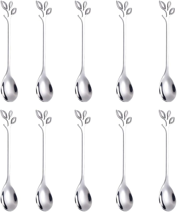 AnSaw Elegant Silver Leaf Coffee Spoons - 10-Piece, 4.7" Mini Stainless Steel Espresso & Dessert Tea Spoons, Perfect for Demitasse & Small Servings