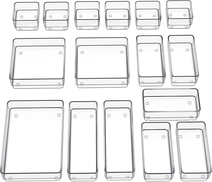 About This Multiple Sizes - 5 different sizes and 16 pieces trays offer you customize combinations to store stuff and... Read more