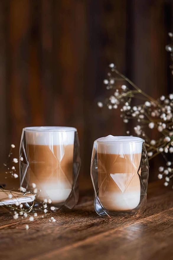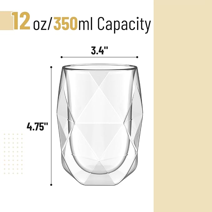 BTaT- Insulated Coffee Mug, Double Wall Glass, Diamond Shape, Set of 4 (12oz, 350ml), Coffee Cups, Tea Cups, Latte Mug, Christmas Gifts