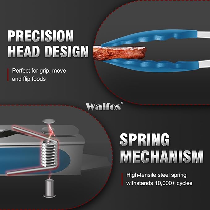 Walfos Silicone Tongs for Cooking - Heat Resistant kitchen tongs for Salad,Cooking, Grilling,Stainless Steel and BPA Free Silicone Tips set of 3 (7" 9" and 12 inch)