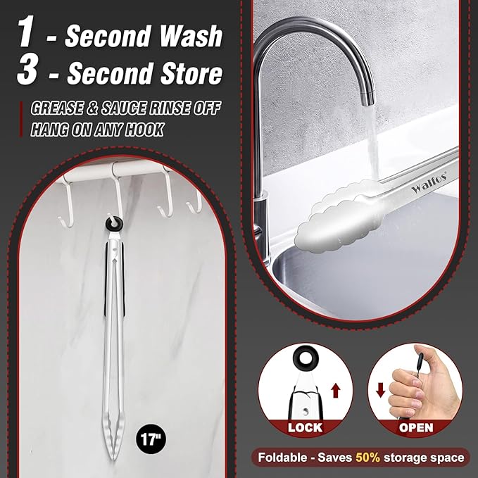 Walfos 17 Inch Extra Long Grill Tongs, Ultimate Stainless Steel BBQ Tongs for Grilling, Cooking, BBQ/Barbecue, Buffet and Turning Food