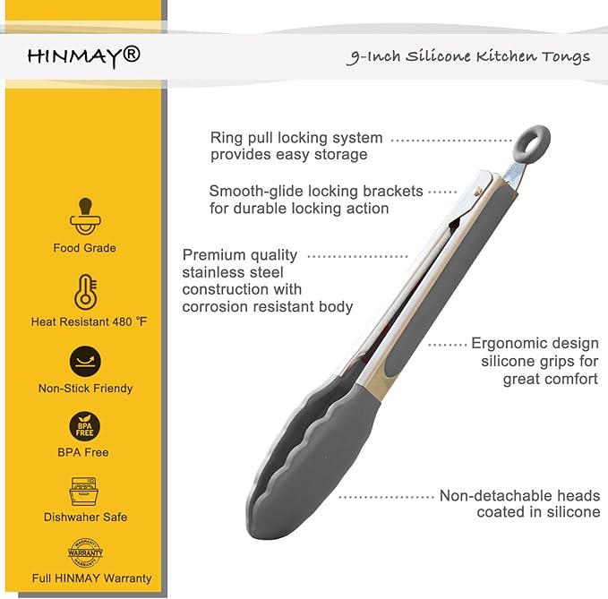 About This CHEF QUALITY STAINLESS STEEL - HINMAY silicone food tongs are made from a thick, corrosion resistant stainless steel... Read more