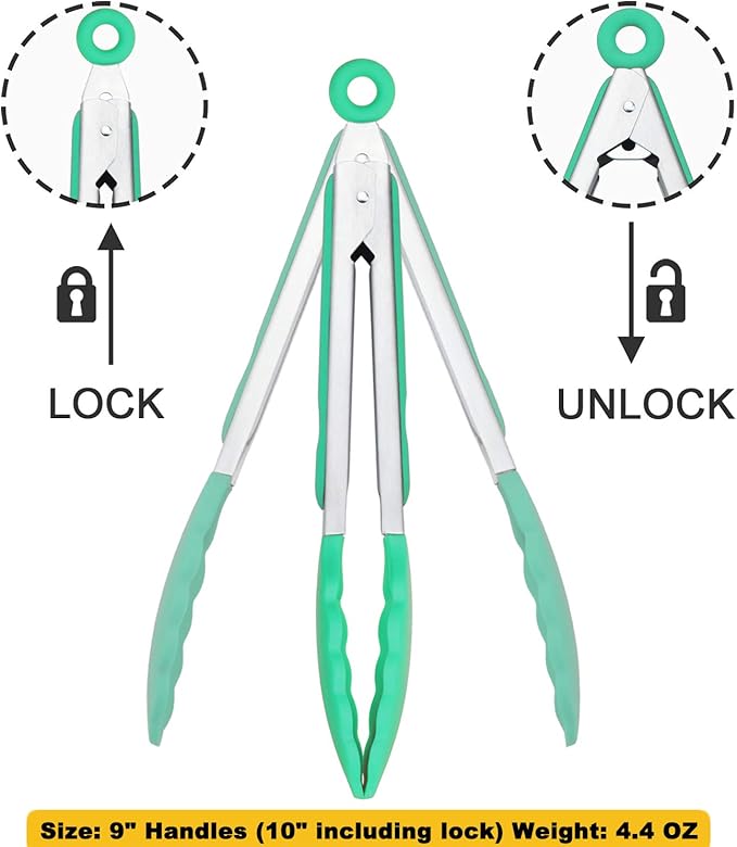 Stainless Steel Kitchen Cooking Tongs with Silicone Tips 9-Inch Serving Tongs, Set of 3 (Mint Pink Yellow)