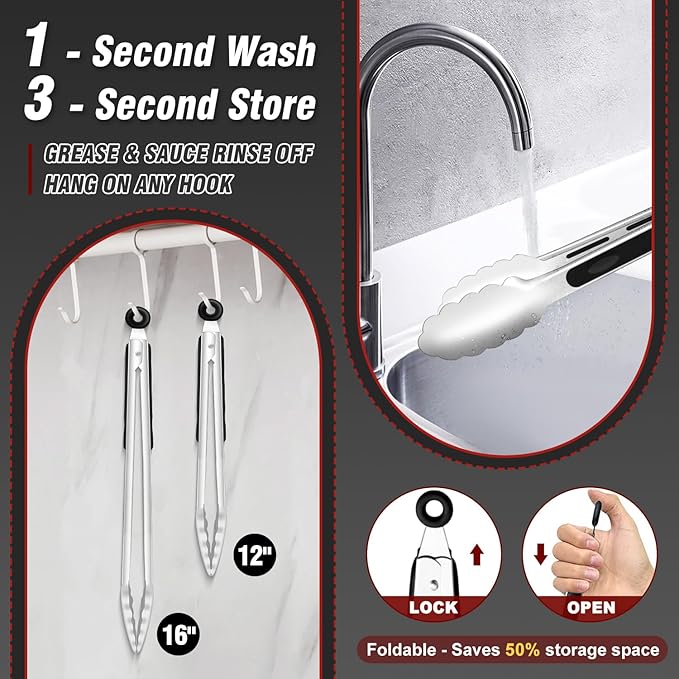 About This ★ Extra Long Tongs - 16 inch and 12 inch BBQ Grilling Tongs Protect your hands from the... Read more