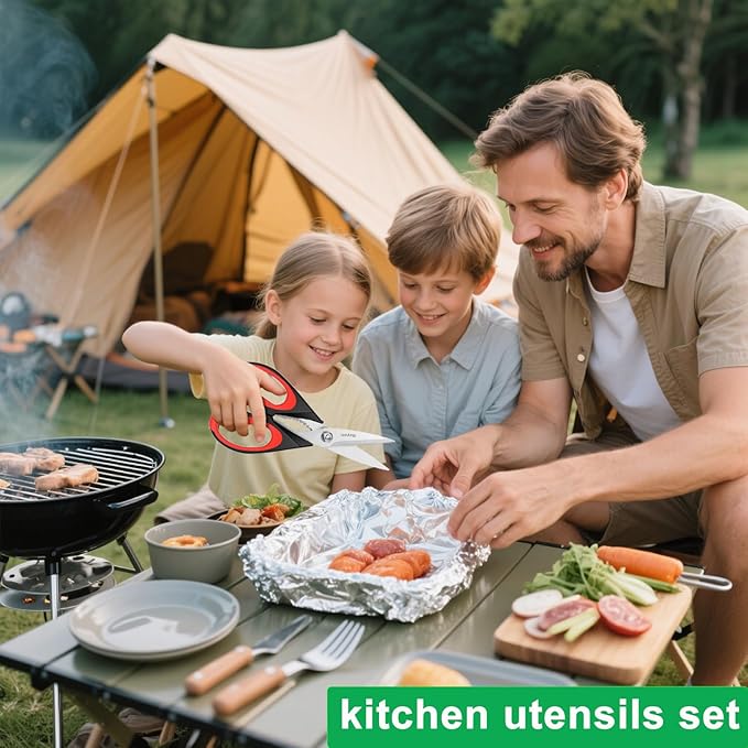 iBayam Kitchen Scissors All Purpose Heavy Duty, Kitchen Utensils Set, Stainless Steel Cooking Utensils Gadgets, Meat Poultry Food Shears Dishwasher Safe Utility Tools Home Gift, with Protective Sheath