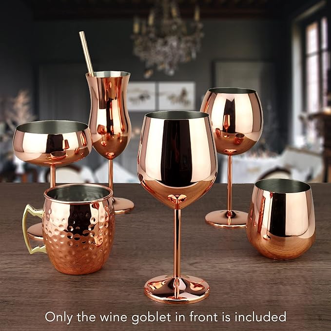 PG Copper/Rose Gold Stem Stainless Steel Wine Glass Set 4-18.5 oz