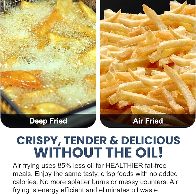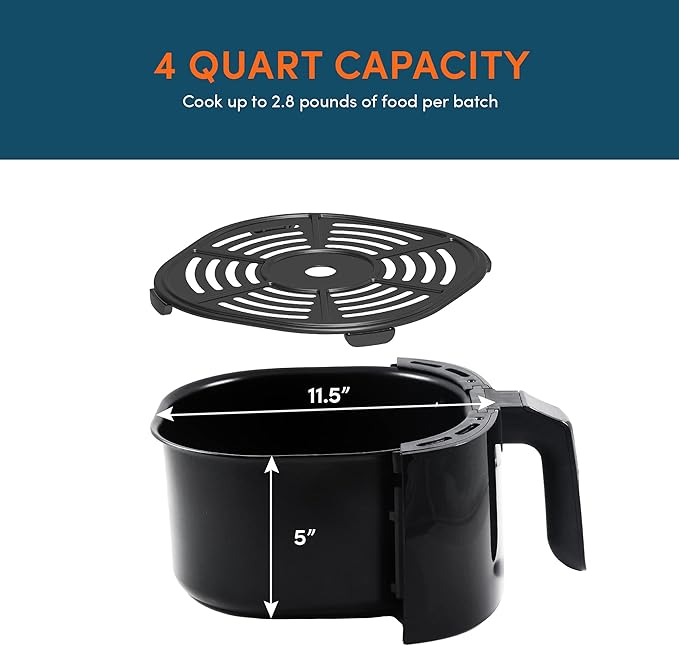 About This LARGE CAPACITY: The 4 quart non-stick basket holds up to 3.2lb of food, perfect for family-sized meals. Cook... Read more