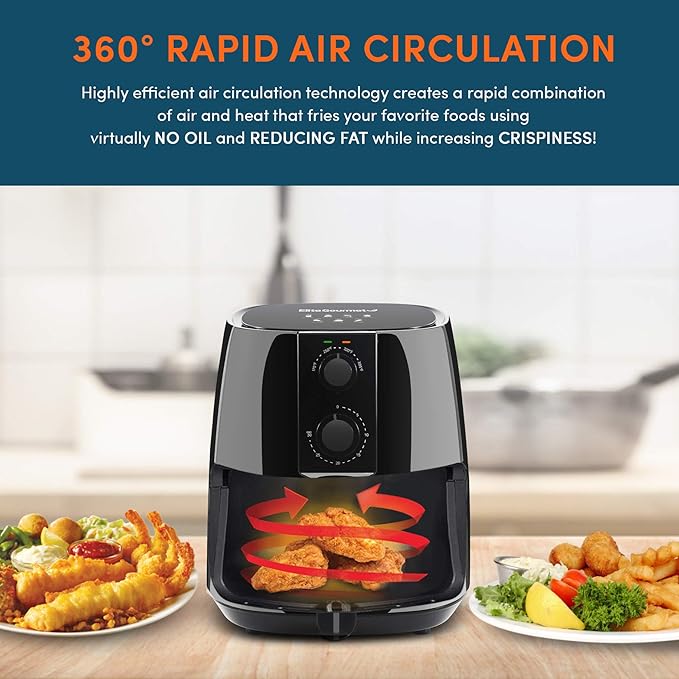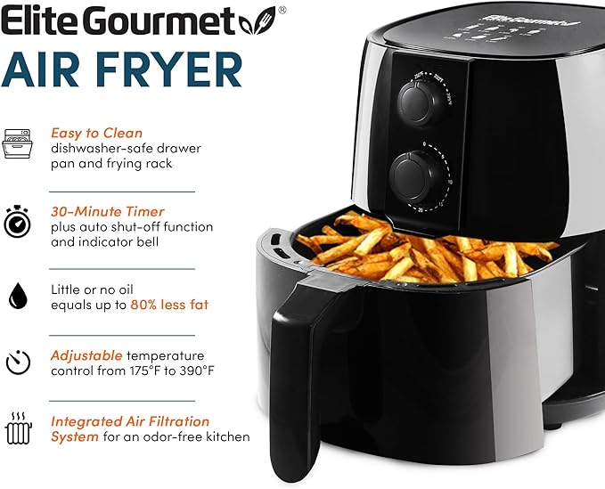 Elite Gourmet EAF4617 Electric Digital Hot Air Fryer, 1350Watts, Oil-Less Healthy Cooker, Timer & Temperature Controls, 4 Quart, Black