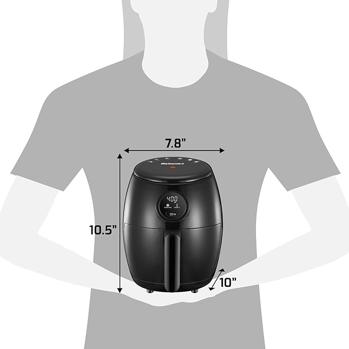 Elite Gourmet EAF2612D Personal 2.1Qt Compact Space Saving Programmable Hot Air Fryer, Oil-Less Healthy Cooker, Timer & Temperature Controls, 1000W, Black