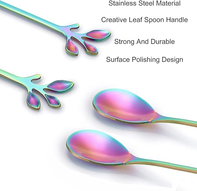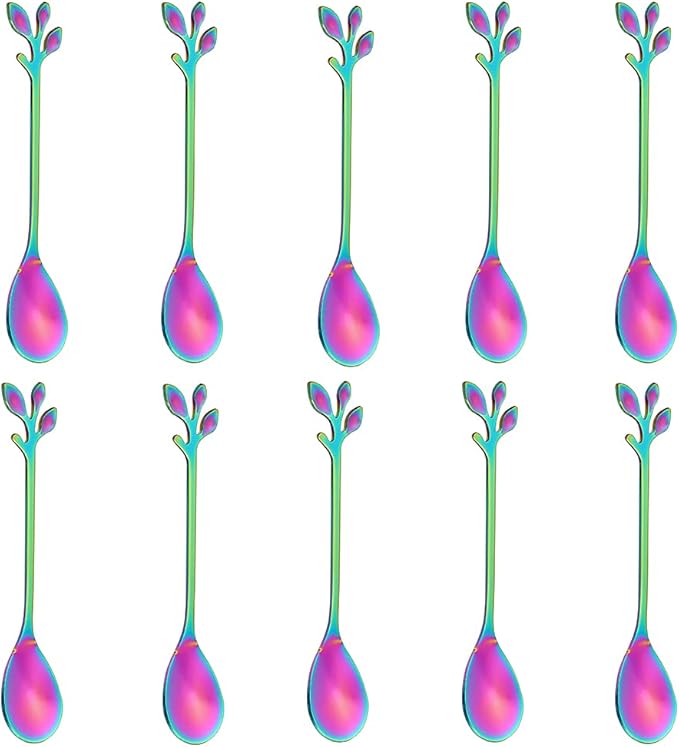 AnSaw Elegant Rainbow Leaf Coffee Spoons - 10-Piece, 4.7" Mini Stainless Steel Espresso & Dessert Tea Spoons, Perfect for Demitasse & Small Servings