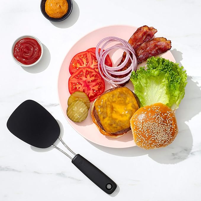 OXO Good Grips Large Silicone Flexible Turner & 65191 Good Grips Nylon Flexible Turner, Black