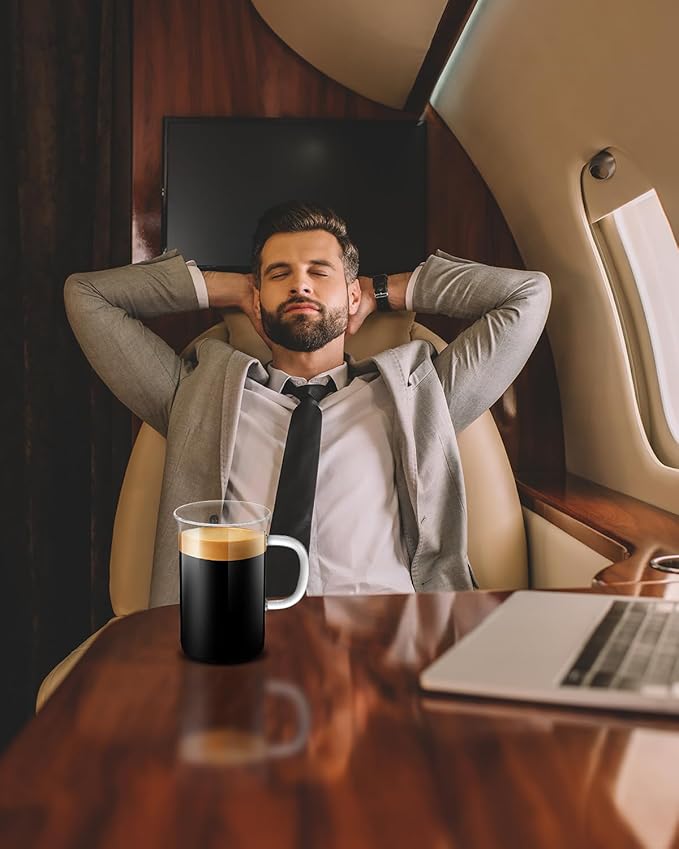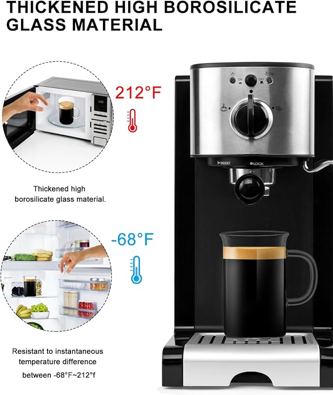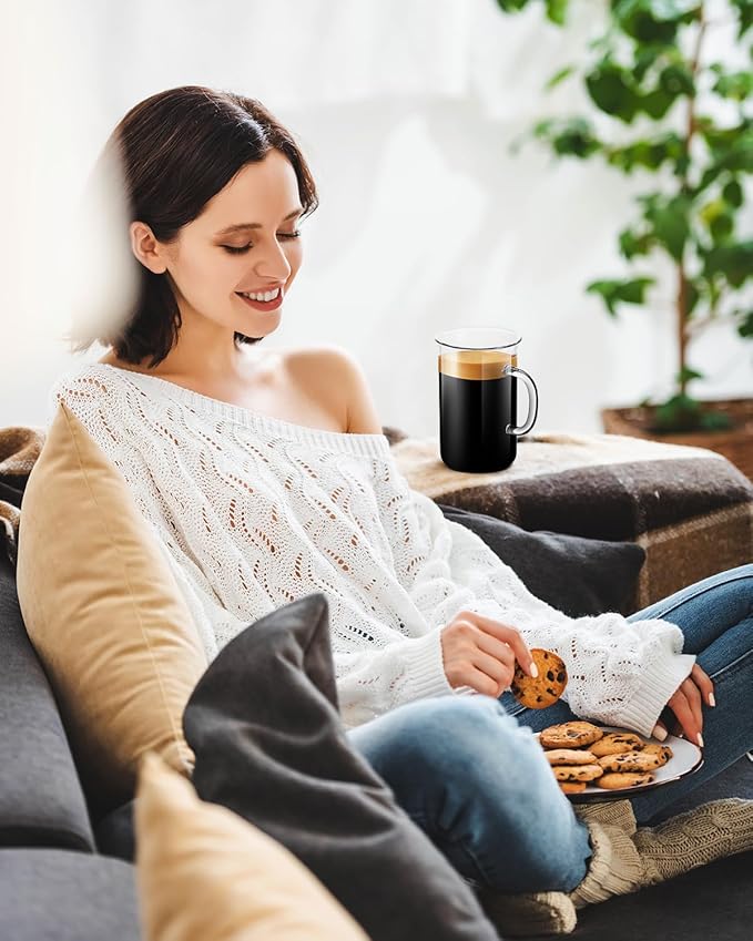 LUXU Glass Coffee Tea Cups(Set of 4)-13 oz,Clear Glass Mugs,Tall Drinking Glasses for Cappuccino,Latte,Espresso,Lead-free Drinking Glasses Great for Juice,Water,Beer,Milk Hot And Cold Drinks