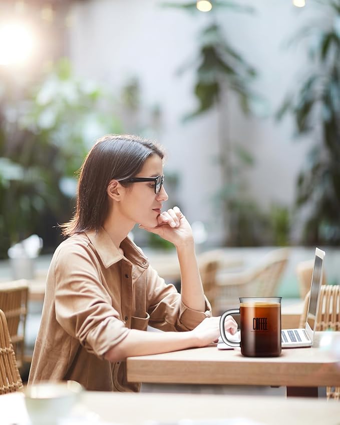 2pcs Set Glass Coffee Mugs 15oz Bell Mouth Glass Coffee Cups Clear Large Tea Cups,Cute Coffee Bar Accessories,Iced Coffee Glasses,Lead-Free Glass Cups for Water,Latte,Milk-Flat Bottomed Design