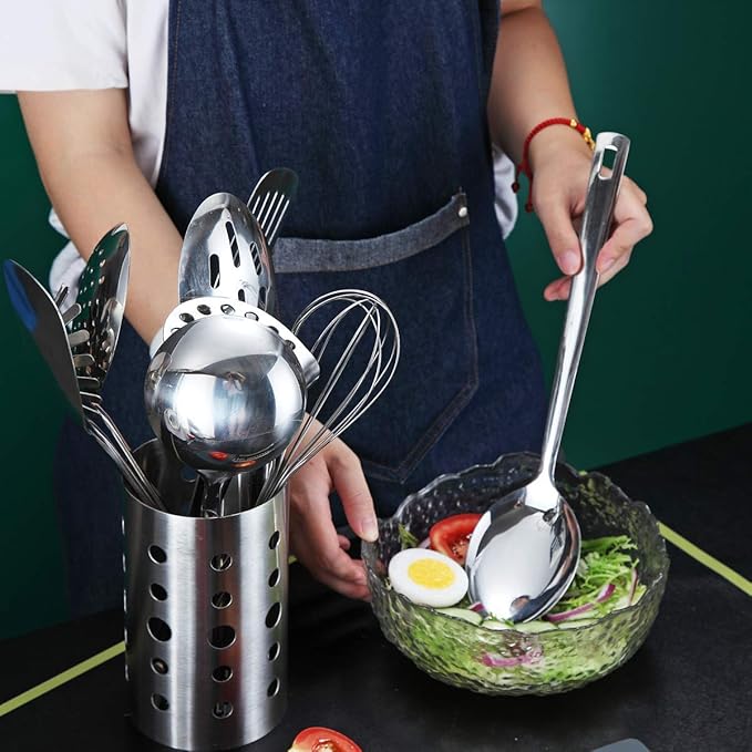 Cooking Spoon, Berglander Stainless Steel Solid Serving, Basting Spoon For Cooking, Kitchen Non-Stick And Heat Resistant, Dishwasher Safe, Easy to Clean