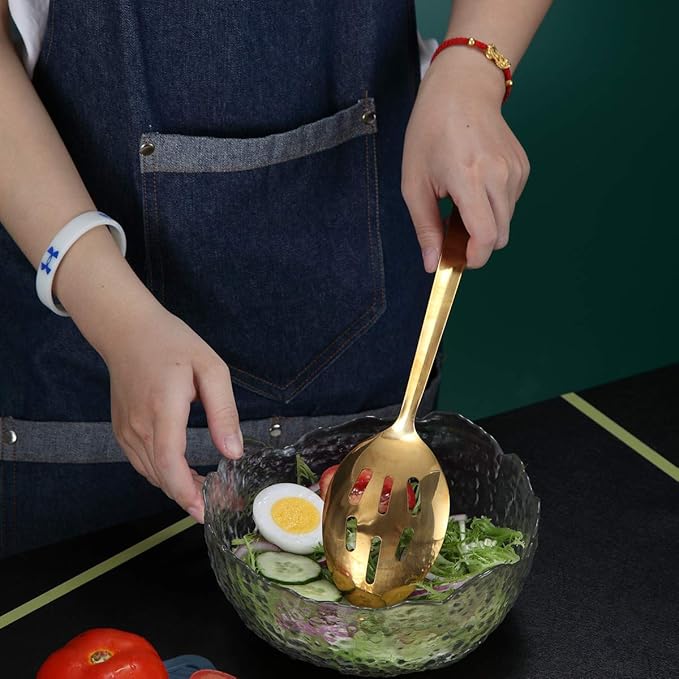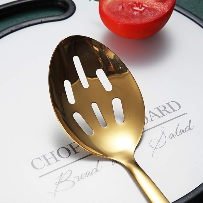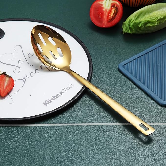 Berglander Gold Cooking Spoon, Stainless Steel Slotted Serving Spoon Titanium Gold Plating, Kitchen Basting Spoon For Cooking, Dishwasher Safe, Easy to Clean