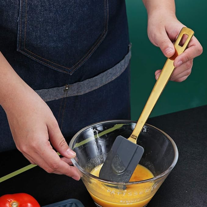 Gold Silicone Spatulas, Berglander Flexible Scrapers Baking Mixing Tool With Titanium Gold Plating, Baking Tools, Heat Resistant, Dishwasher Safe, Easy to Clean