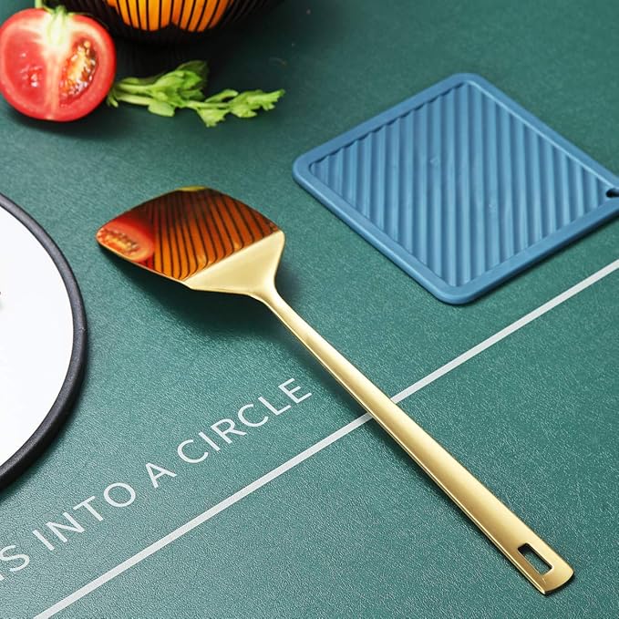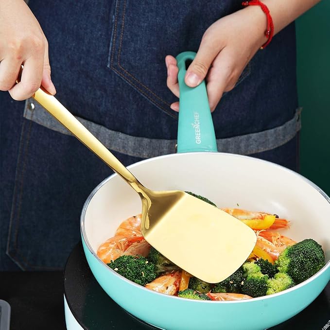 Berglander Gold Spatulas, Solid Turner Titanium Gold Plating, Barbecue Metal Spatulas Turner For Cooking, Kitchen, Dishwasher Safe, Easy to Clean