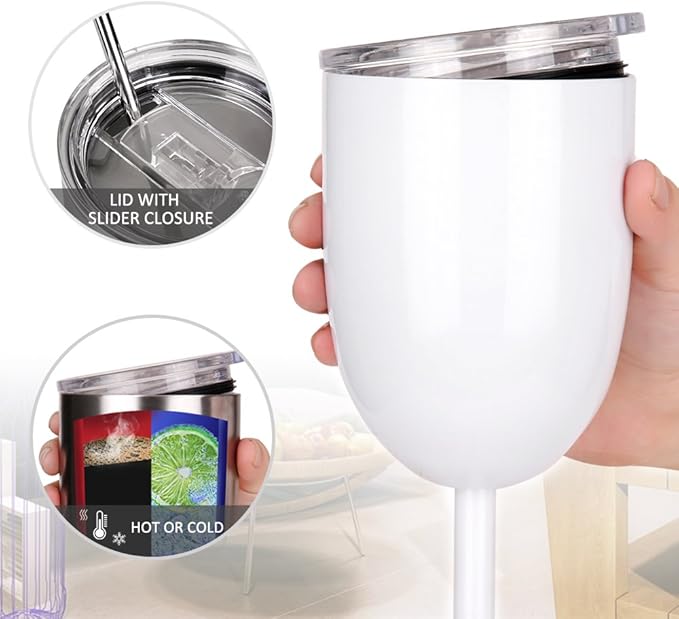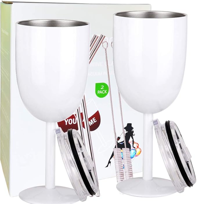 AMZUShome Stainless Steel Wine Glasses(2 Pack).Double Walled Vacuum Insulated Wine Tumbler Cups With Lid and Straw.Friendship,Christmas,Birthday Gifts for Women Men Friends Dad Mom(10oz White)