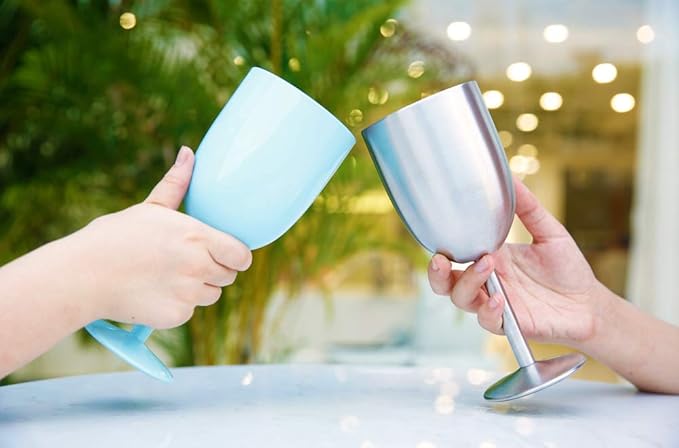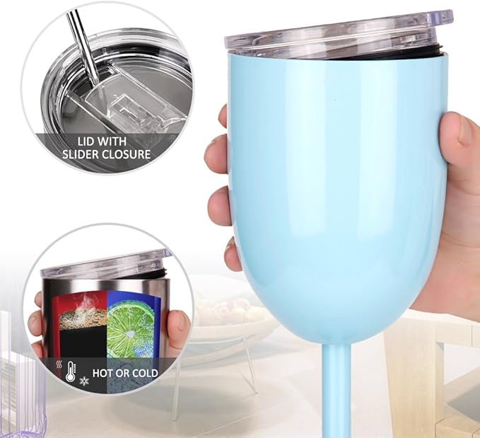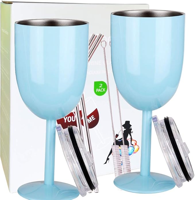 AMZUShome Stainless Steel Wine Glasses(2 Pack).Double Walled Vacuum Insulated Wine Tumbler Cups With Lid and Straw.Friendship,Christmas,Birthday Gifts for Women Men Friends Dad Mom(10oz Light Blue)