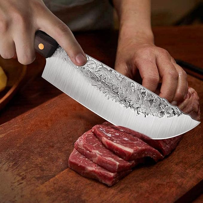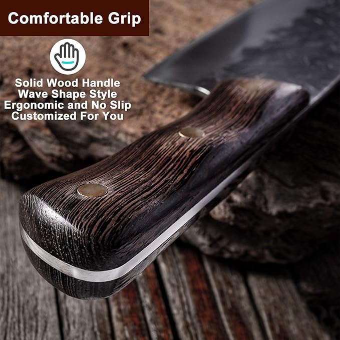 DRAGON RIOT Hand Forged Butcher Knife Cleaver 7.5 Inch High Carbon Steel Meat and Vegetable Cleaver Knife Full Tang Sharp Chef Knife for Kitchen Camping and BBQ