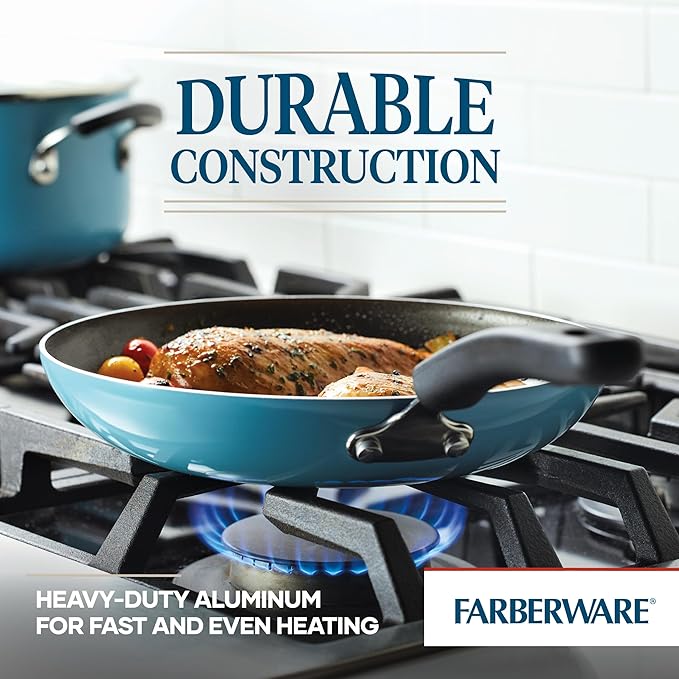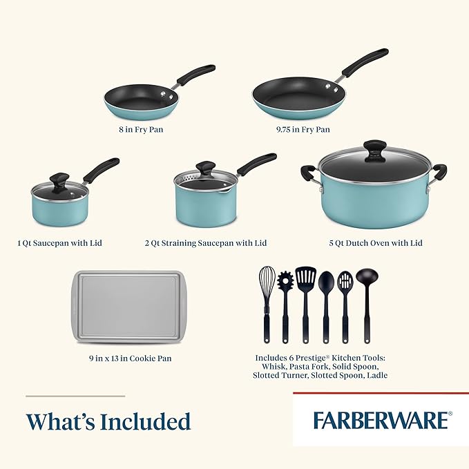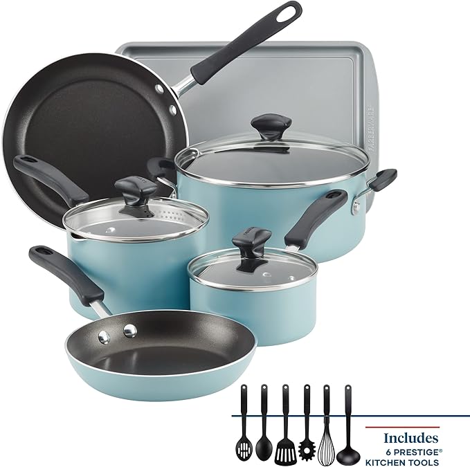 Farberware Cookstart DiamondMax Nonstick Cookware/Pots and Pans Set, Dishwasher Safe, Includes Baking Pan and Cooking Tools, 15 Piece - Aqua