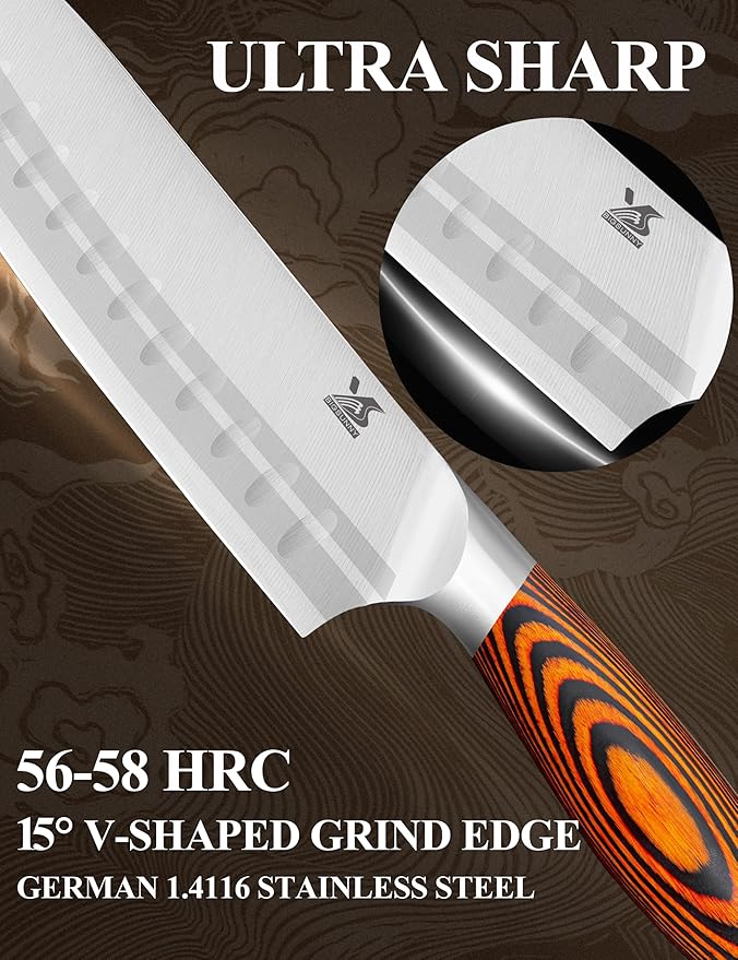 About This 【Well-Designed Knife Set】BIGSUNNY Cutlery 7pcs knife set includes: 1*cleaver knife, 1*chef knife, 1*carving knife, 1*bread knife, 1*santoku knife,... Read more