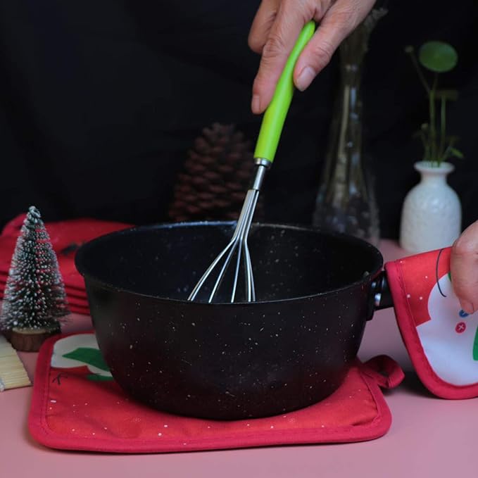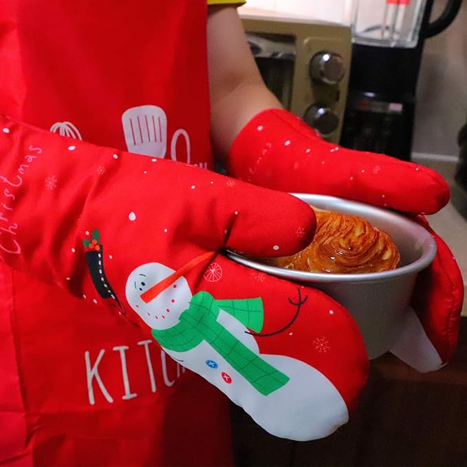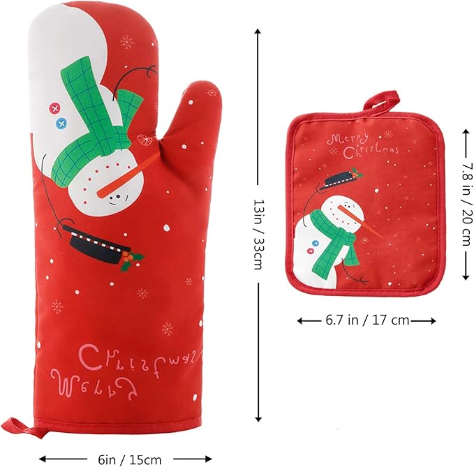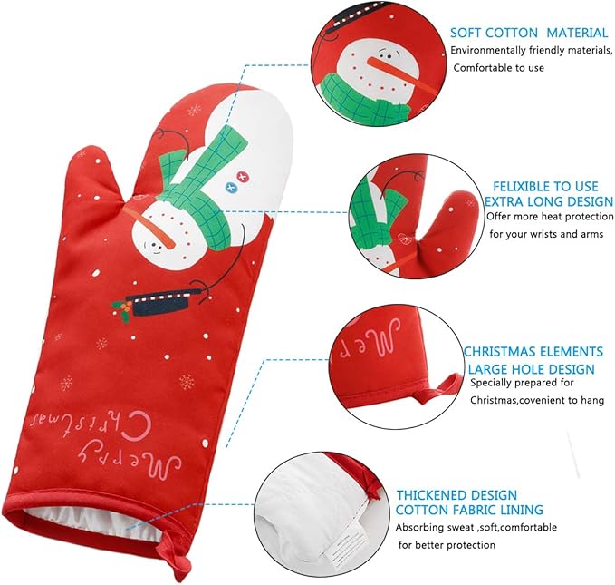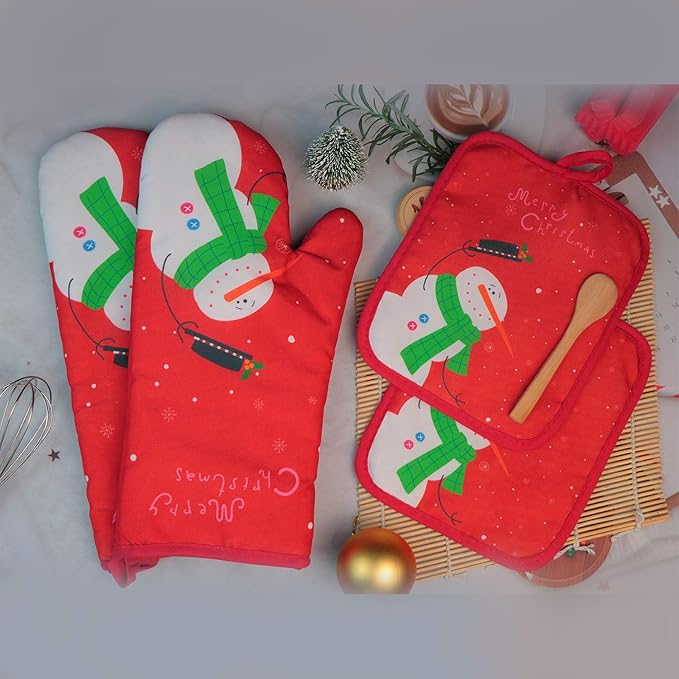 Oven Mitts and Potholders BBQ Gloves-Oven Mitts and Pot Holders with Recycled Infill Silicone Non-Slip Cooking Gloves for Cooking Baking Grilling (4-Piece Set) (Red Christmas Snow)