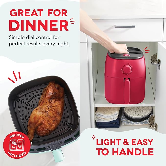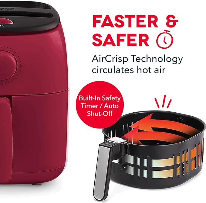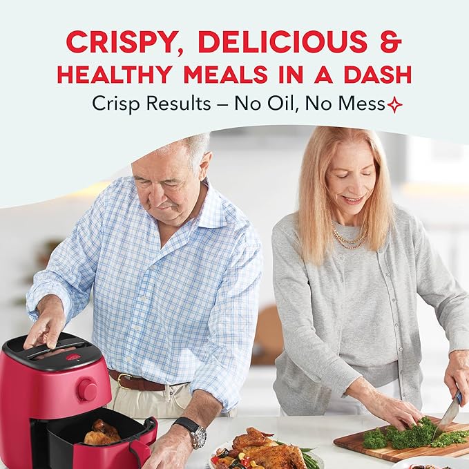 DASH Tasti-Crisp™ Electric Air Fryer Oven, 2.6 Qt., Red – Compact Air Fryer for Healthier Food in Minutes, Ideal for Small Spaces - Auto Shut Off, Analog, 1000-Watt