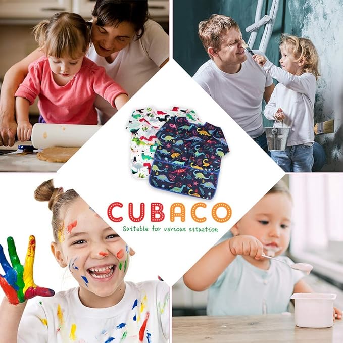 CUBACO Kids Painting Apron, 2pcs Waterproof Art Smocks For Child 3-8 Years, Kids Smocks for Painting Aprons with Long Sleeve