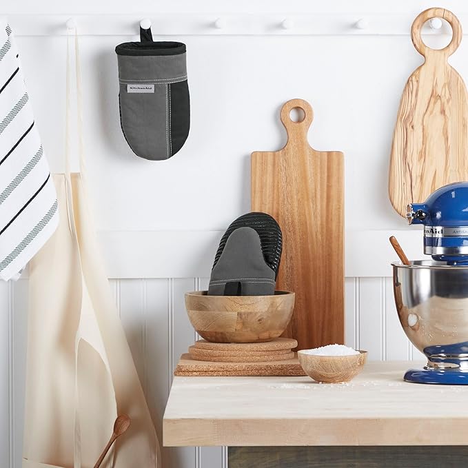 KITCHENAID Beacon Two-Tone Mini Oven Mitt 2-Pack Set, Contour Silver/Matte Black, 5.5"x8"
