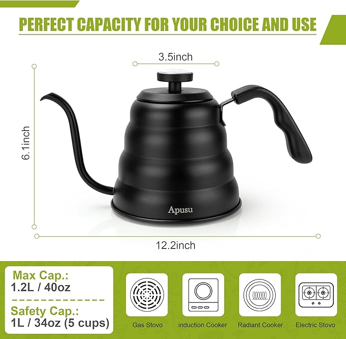 About This ENJOY BETTER COFFEE AT HOME: The coffee pot is designed with a gooseneck spout. This kind of gooseneck... Read more