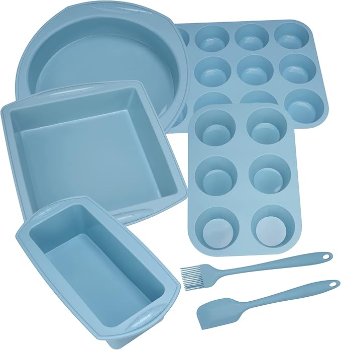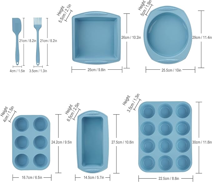 Economical 7in1 Nonstick Silicone Baking Cake Pan Cookie Sheet Molds Tray, Heat Resistant Bakeware Tools for Muffin Loaf Bread Pizza Cupcake