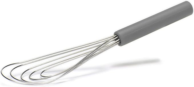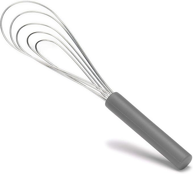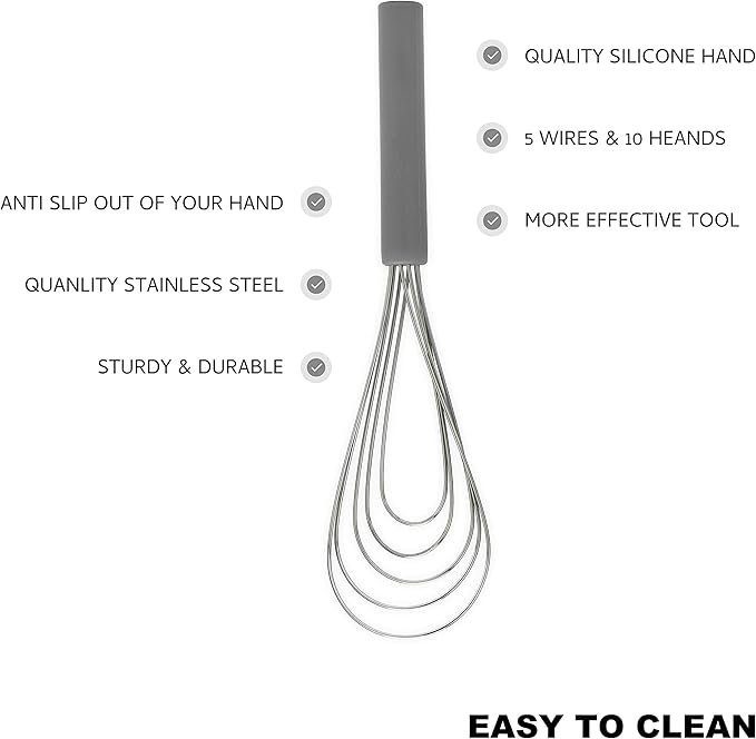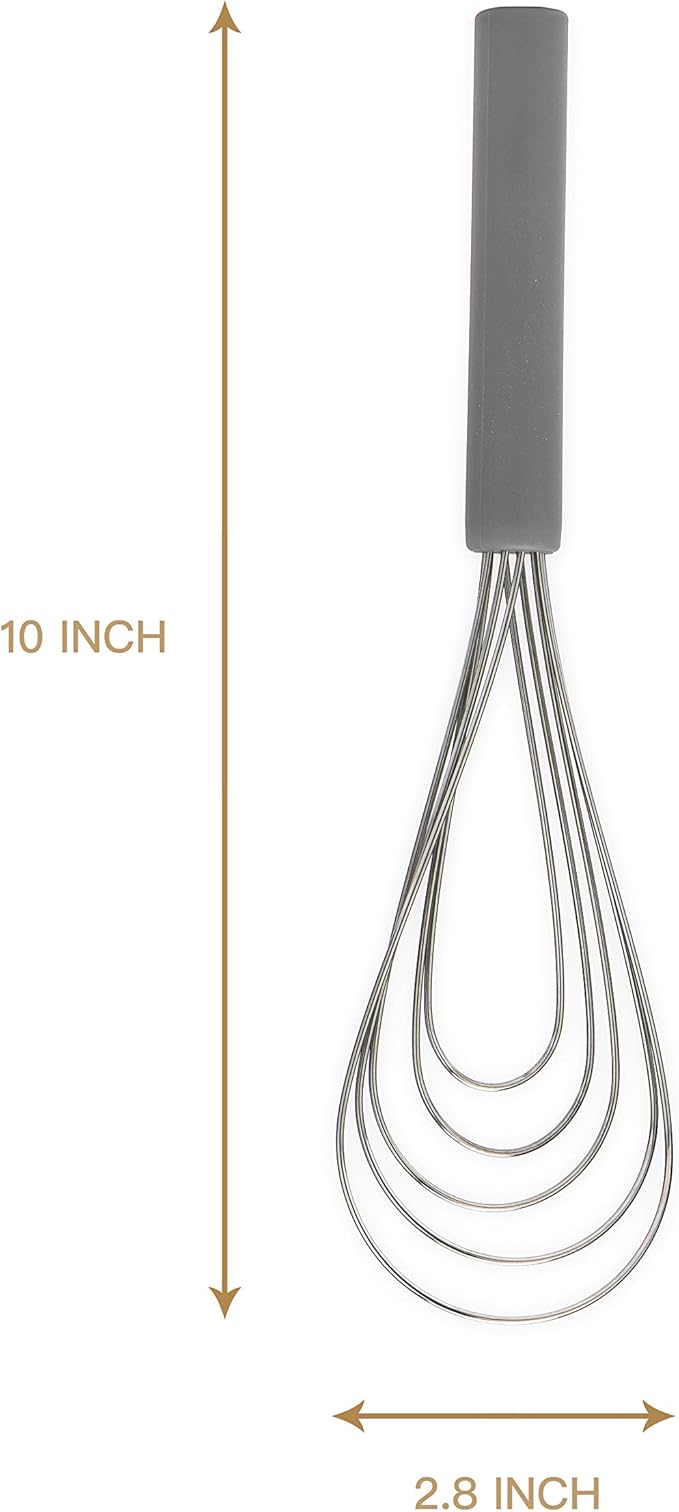 Flat Whisk Silicone Handle Non Slip 10" - 5 Wires Whisk with 10 Heads for Kitchen Cooking by Jell-Cell (Grey)