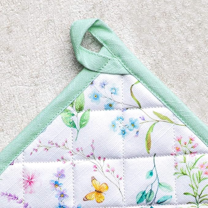 Maison d' Hermine Pot Holders 100% Cotton Heat Resistant Potholders 8" x 8" Hot Pads with Loop BBQ, Cooking, Baking, Grilling, Kitchen, Handling Hot Pans Spring/Summer (Pack of 1, Just Floral)