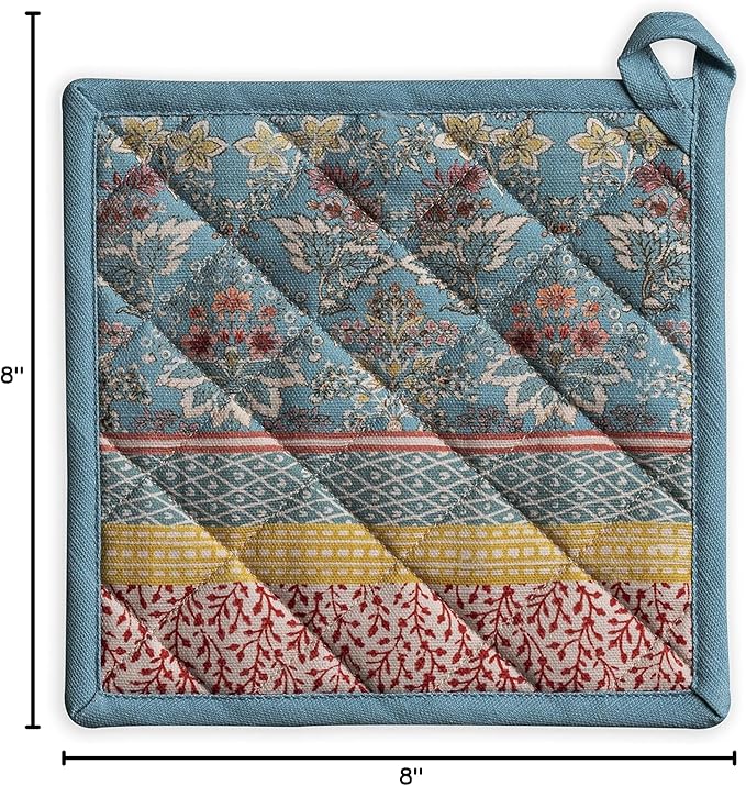 Maison d' Hermine Pot Holders 100% Cotton Heat Resistant Potholders 8" x 8" Hot Pads with Loop BBQ, Cooking, Baking, Grilling, Kitchen, Handling Hot Pans Spring/Summer (Pack of 1, Marquise)