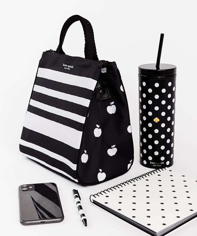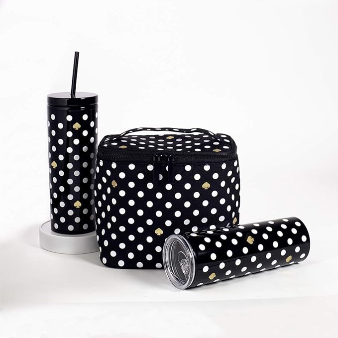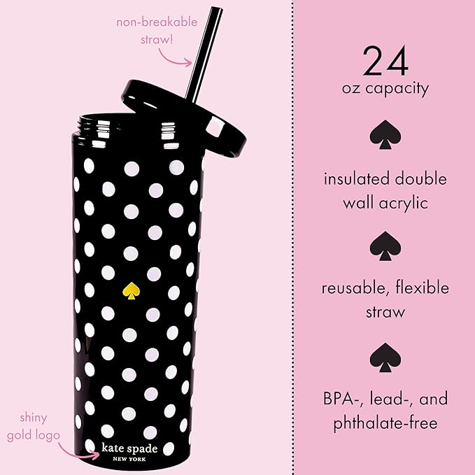 kate spade new york Insulated Tumbler with Reusable Straw, Black 24 Ounce Acrylic Travel Cup with Lid, Polka Dots