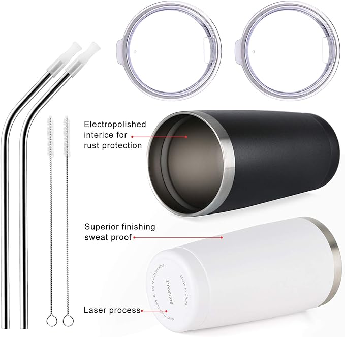 Wedding Anniversary for Couple Friend Lovers Cups Stainless Steel Wine Tumbler Travel Mug with Straw and Lid,2 Pack (4.blackwhite)