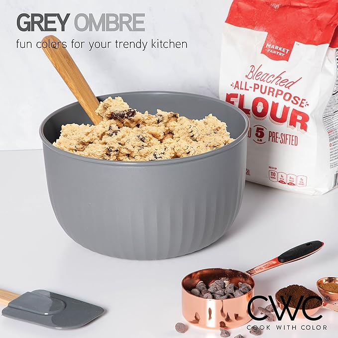 COOK WITH COLOR Prep Bowls with Lids- Wide and Deep Nesting Plastic Small Mixing Bowl Set with Lids, 8 Piece Set - Deep Bowls, Gray