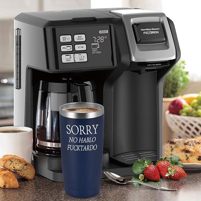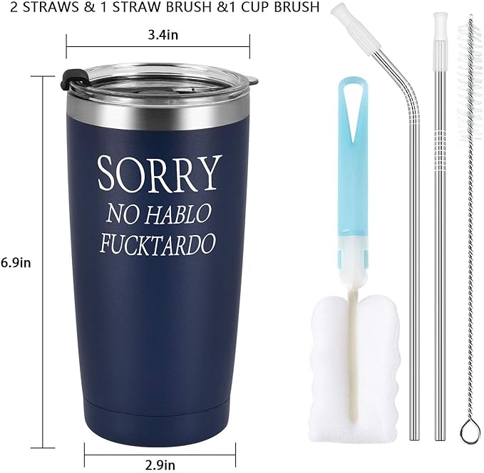 Sorry No Hablo Fuctardo Travel Tumbler Funny Birthday Christmas Gifts for Friends Dad Mom Sister Brother Family Coworkers, 20oz Insulated Stainless Steel Tumbler with Lid and Straw, Navy Blue