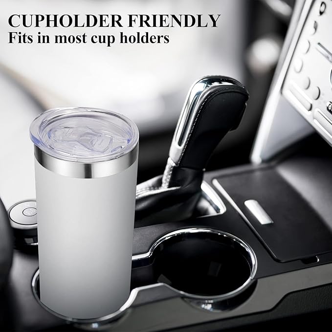 VEGOND Stainless Steel Tumblers Bulk 6 Pack, 20 oz Vacuum Insulated Skinny Tumblers with Lid and Straw, Double Wall Coffee Mug, Travel Water Cup, White
