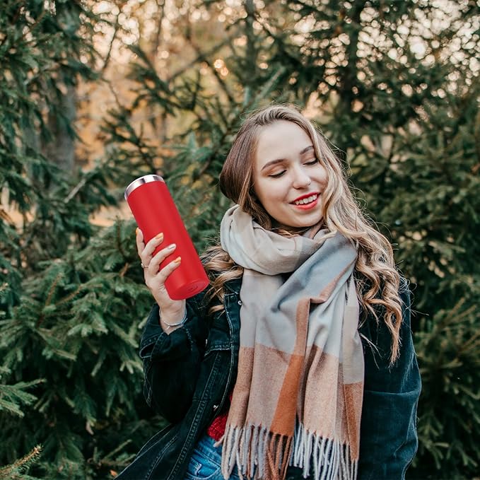 VEGOND 20 oz Stainless Steel Skinny Tumbler with Lids and Straws, 20oz Double Wall Insulated Slim Tumbler Cup for Cold Hot Drinks, Red 1 Pack