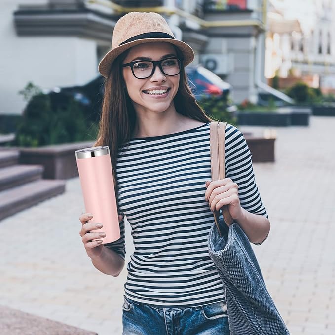 VEGOND Stainless Steel Tumblers Bulk 12 Pack, 20 oz Vacuum Insulated Skinny Tumblers with Lid and Straw, Double Wall Coffee Mug, Travel Water Cup, Light Pink