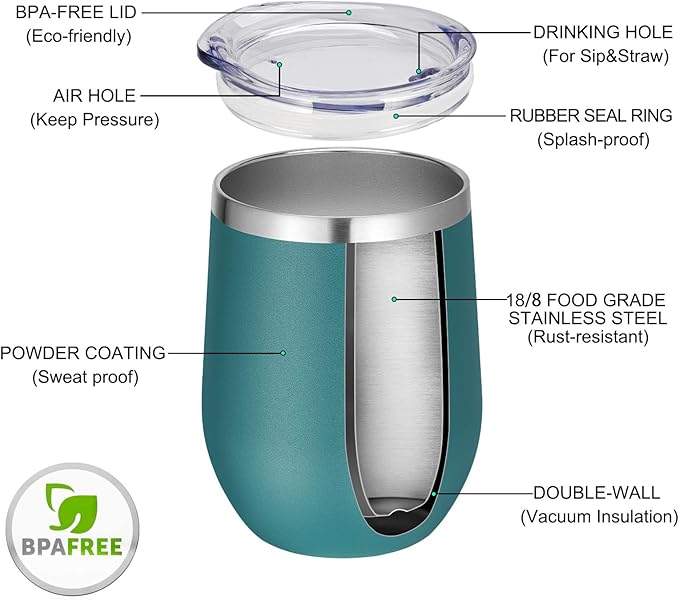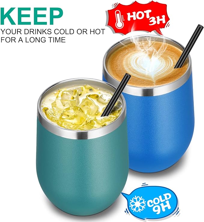 • Fashionable and Reusable: The 12oz wine tumbler bulk are made of 18/8 food grade stainless steel with non-slip frosted coating,no metallic taste. It has an eye-catching and fashionable appearance and is more solid and safer than other ordinary glasses. It is equipped with a BPA-free lid And the reusable plastic straw can be selectively used for more drinks