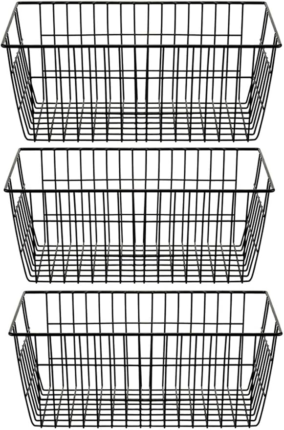 SANNO Freezer Baskets Wire Storage Baskets Closet Baskets Bin Farmhouse Organizer Storage Bins Large Organizer Bins for Home, Office, Bathroom, Pantry Organization Storage -Black Set of 3, 15.7"
